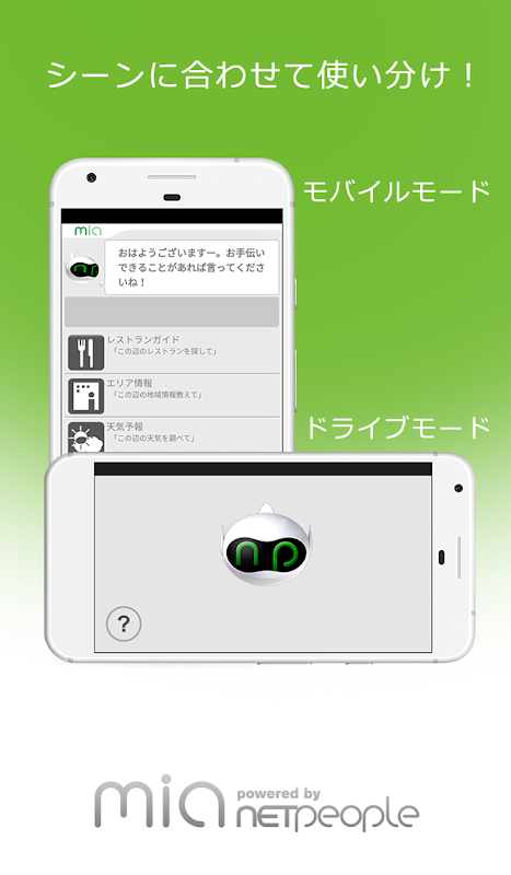 mia(ミア)音声対話アシスタントは、音声やテキストによる会話を通して、飲食店や地域情報、イベントの検索、天気予報、乗換案内、音楽再生、スケジュール管理、メール、電話といった、スマートフォンユーザーの行動を音声で強力にサポートする無料アプリケーションです。