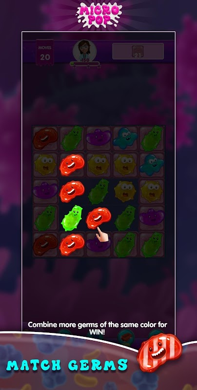 Plan üst üste 3 veya daha fazla mikrop eşleştirerek hamle, oyun inanılmaz oyun keyfini çıkarın.