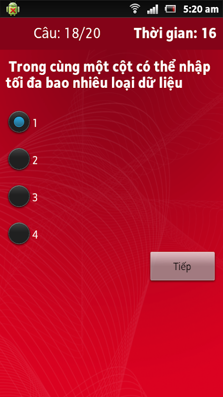 - Chức năng Trắc nghiệm: sau khi ôn tập kiến thức, người học có thể tự kiểm tra với gói câu hỏi 20 câu ngẩu nhiên với khoản thời gian quy định.