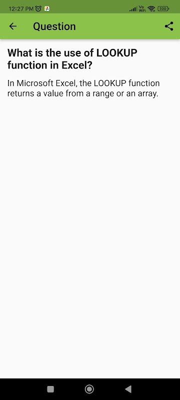 MS Excel Mülakat Soruları: Özellikle MS Excel ile ilgilenenler için, uygulamamız MS Excel kavramlarına odaklanan 100'den fazla soru içeren özel bir bölüm içerir. MS Excel mülakatında bilginizi derinleştirin ve kendinize olan güveninizi artırın.
