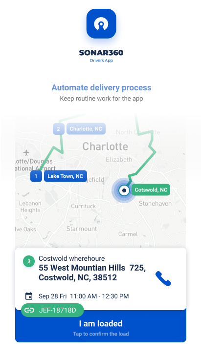 Sonar 360, sürücülere tüm sevk ihtiyaçları için basit ve kullanışlı bir kullanıcı arayüzü sağlar.