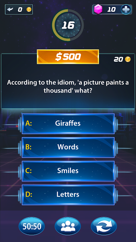Trivia GK: General Knowledge Questions is a general trivia game. In this game, you have to answer 15 challenging questions of general knowledge to win the million and became a Billionaire.