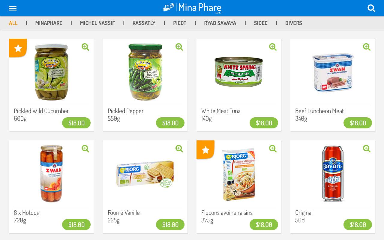 Minaphare müvekkillerini ziyaret ederken bizim temsilcileri ürünlerimizi listede gezinebilirsiniz E-katalog. Herhangi bir promosyon varsa tüm ürünlerimiz ağırlık bilgileri ve özel fiyatlarla marka ve kategorilere göre listelenmiştir.