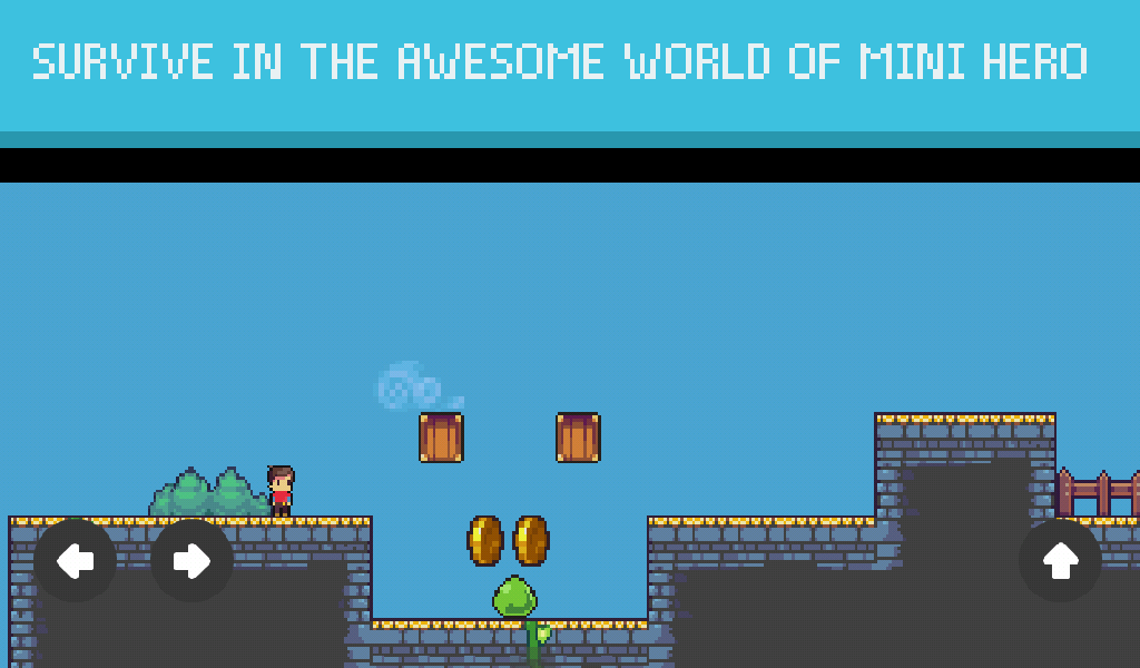 In mini hero loop je rond in een wereld vol met kwaadaardige monsters. Er zijn 5 verschillende werelden om te ontdekken, en elke wereld heeft 10 levels on te verslaan. Er zijn momenteel 50 levels in totaal en in de loop van de tijd komen er nog veel meer levels om te ontdekken.