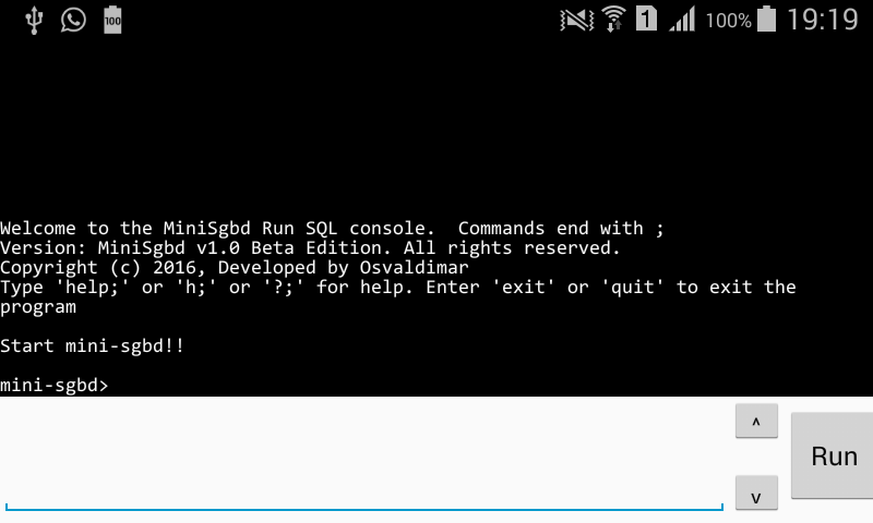 MiniSGBD Execute SQL (DBMS), is an educational application to assist or learn the SQL language. The application runs the basic SQL commands through a command-line interface (Terminal), commands and queries are basically a first-time view with MySQL when executed by the command line. The data is saved and can be queried, also have a list of previous commands executed. Here is a list of possible operations.