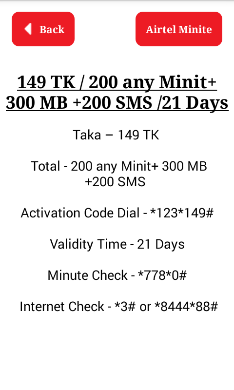 Minite Package Airtel - এয়ারটেল মিনিট প্যাক hakkında