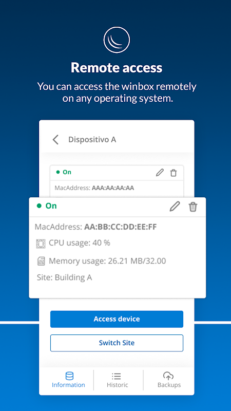 Bulut çözümümüzü kullanarak güvenli bir VPN ile erişin ve SNMP, IPSec gibi ihtiyacınız olan her şeyi yapılandırın... Cihazlarınıza erişmek ve bir daha asla IP tarayıcıları, Putty, Anydesk, Wireguard veya TeamViewer kullanmak zorunda kalmamak basit ve şık bir yoldur;