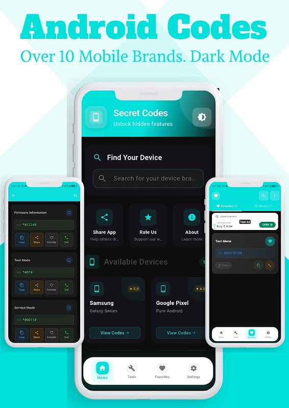 Uygulama, telefonunuzun gizli kodlarını bulmanızı kolaylaştıran kullanıcı dostu bir arayüze sahiptir. Samsung, Huawei, LG ve daha fazlası dahil olmak üzere çok çeşitli akıllı telefon markalarını ve modellerini destekler. Ağ ayarları, teşhis araçları ve daha fazlası gibi gizli özelliklere erişmek için bu uygulamayı kullanabilirsiniz.