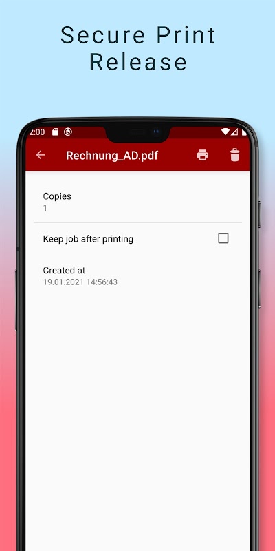 kuruluşunuz içinde herhangi bir yazıcı veya çok işlevli bir Mobil Baskı Çözümü sunucuda biriktirilir özel baskı işlerini serbest bırakmak için Mobil Baskı Çözümü App kullanın. Bu uygulama ücretsizdir ancak yüklü ve yapılandırılmış bir Mobil Baskı Çözümü sunucusu gerektirir.