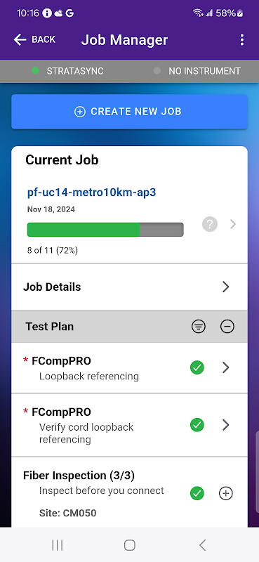 VIAVI Mobile Tech, VIAVI test cihazları için StrataSync ile senkronizasyonları otomatikleştiren bir teknisyen üretkenliği uygulamasıdır. Test sonuçları otomatik olarak bulutta yedeklenir ve yeni limit planları ve yapılandırmaları StrataSync'ten bireysel teknisyenlere dağıtılabilir. Güncel kılavuzlara, hızlı kartlara, eğitim videolarına ve teknik desteğe uygulama içinden isteğe bağlı olarak erişilebilir. Test sonuçları, teknisyenlerin müşteri konumlarıyla çalışmasına yardımcı olmak için coğrafi konum verileriyle daha da geliştirildi. Dosya Yöneticisi, test raporlarının cihazdan indirilmesine ve e-posta dahil diğer mobil uygulamalara gönderilmesine olanak tanır. SmartAccess Anywhere kodları SMS ve e-posta yoluyla paylaşılabilir. Test cihazı arayüzleri mobil cihazınızdan görüntülenebilir.
