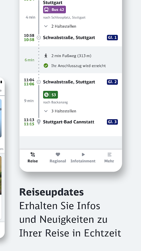 Ve bunun en iyi yanı, sörf yaparken, yeni Mobility Stuttgart uygulamasında hangi içeriğe eriştiğinize bakılmaksızın seyahatinizle ilgili en önemli bilgilerin en üstte sabitlenmesidir. Böylece bir daha asla çıkışınızı veya değişiminizi kaçırmazsınız ve rahat bir şekilde yolculuğunuzun tadını çıkarabilirsiniz!