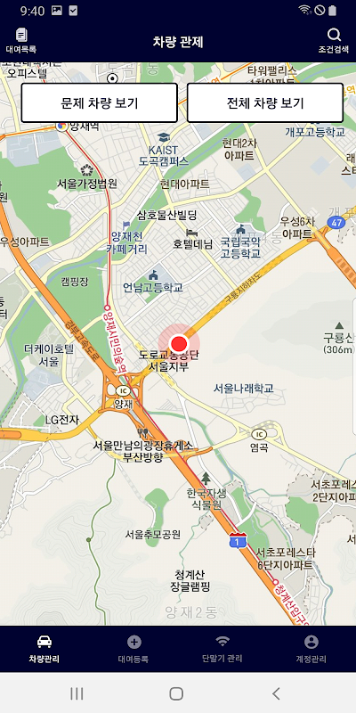 보유 차량 관제 기능 및 차량 상세 정보 확인이 가능합니다.