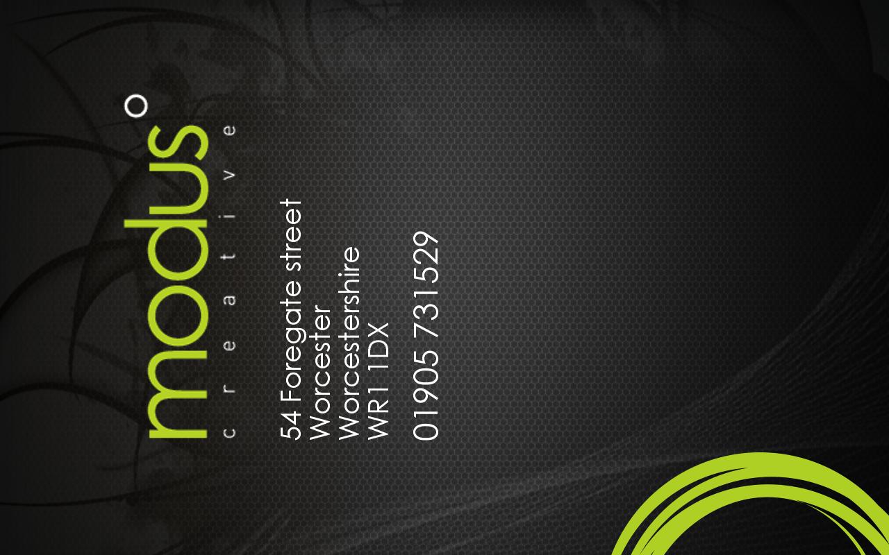 We also own modus print a digital print service with studio design and a Printing.com franchise for offset litho printing. and modus online our online, web and app development business. To contact us call 01905 731529 - we are always happy to share our modus.