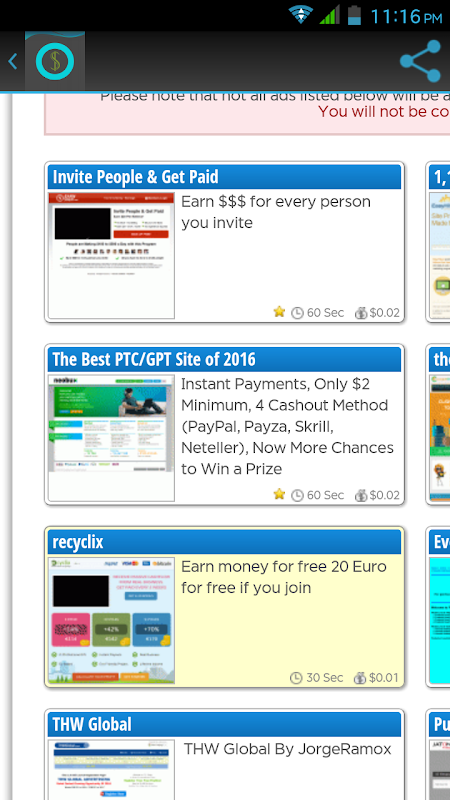 application is only jumper to original site.pay 0.001 to 0.01 $ when click ads.