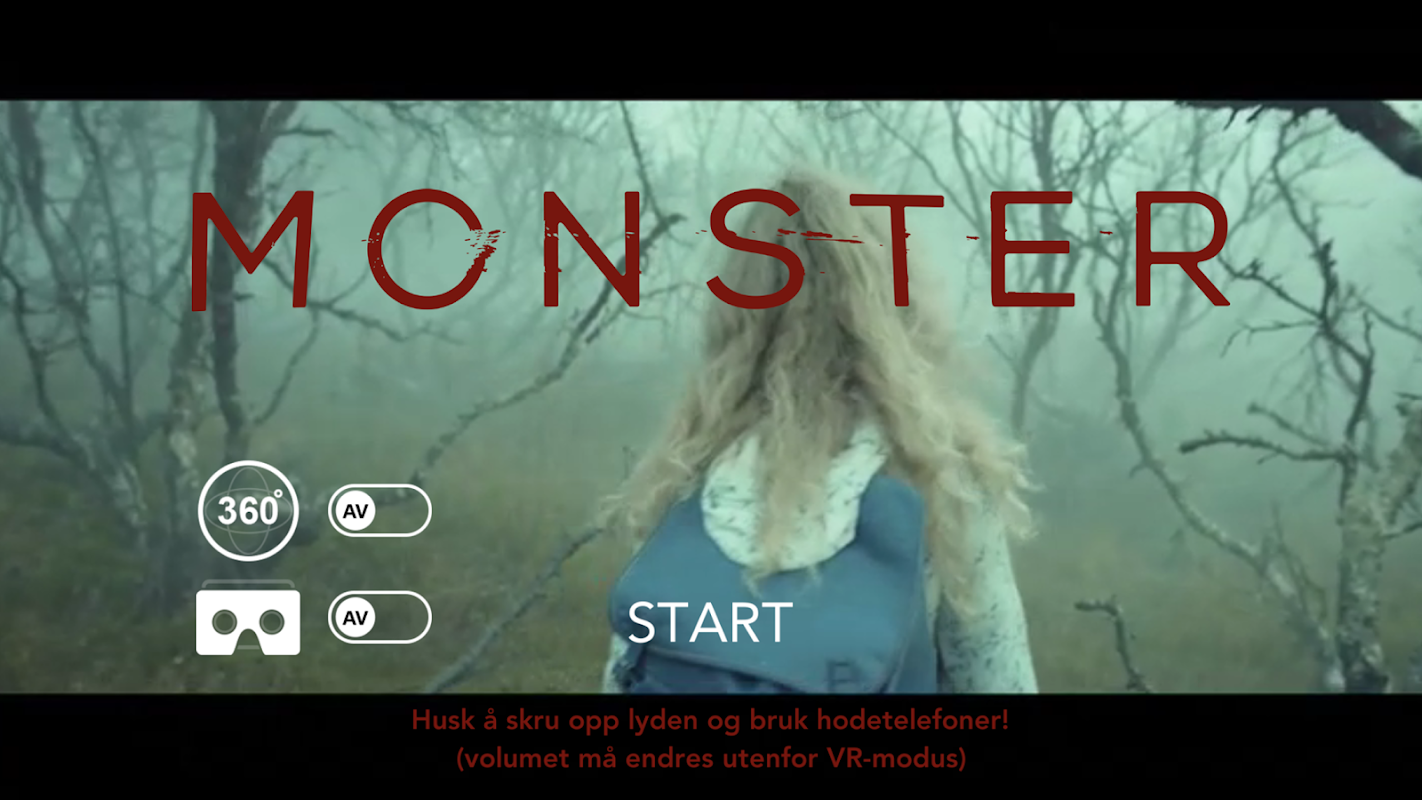 I Monster VR blir du en del av NRKs mysteriedrama «Monster». Gjør deg klar for en fryktinngytende opplevelse når du nå entrer drømmene til Bjørn Sundquists rollefigur Ed.