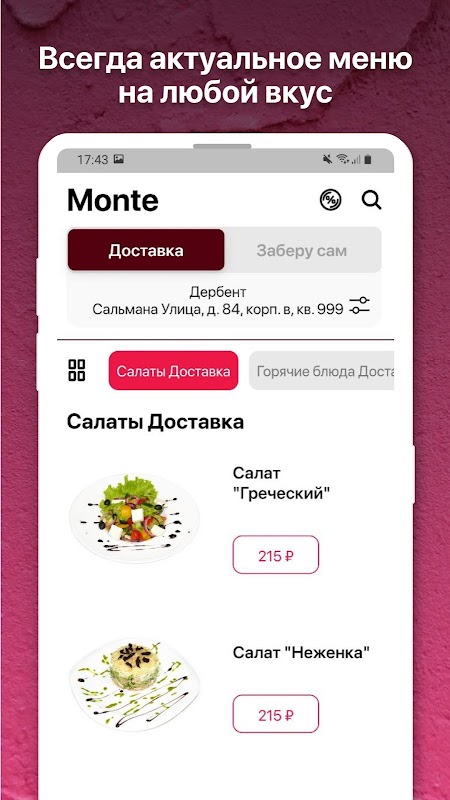 Derbent'teki Monte Carlo yemek dağıtım uygulamasına hoş geldiniz! Pizzadan dürümlere ve sıcak yemeklere kadar geniş bir yemek yelpazesi sunmaya hazırız. Neyi sevdiğiniz önemli değil, herkes için bir şeyimiz var.