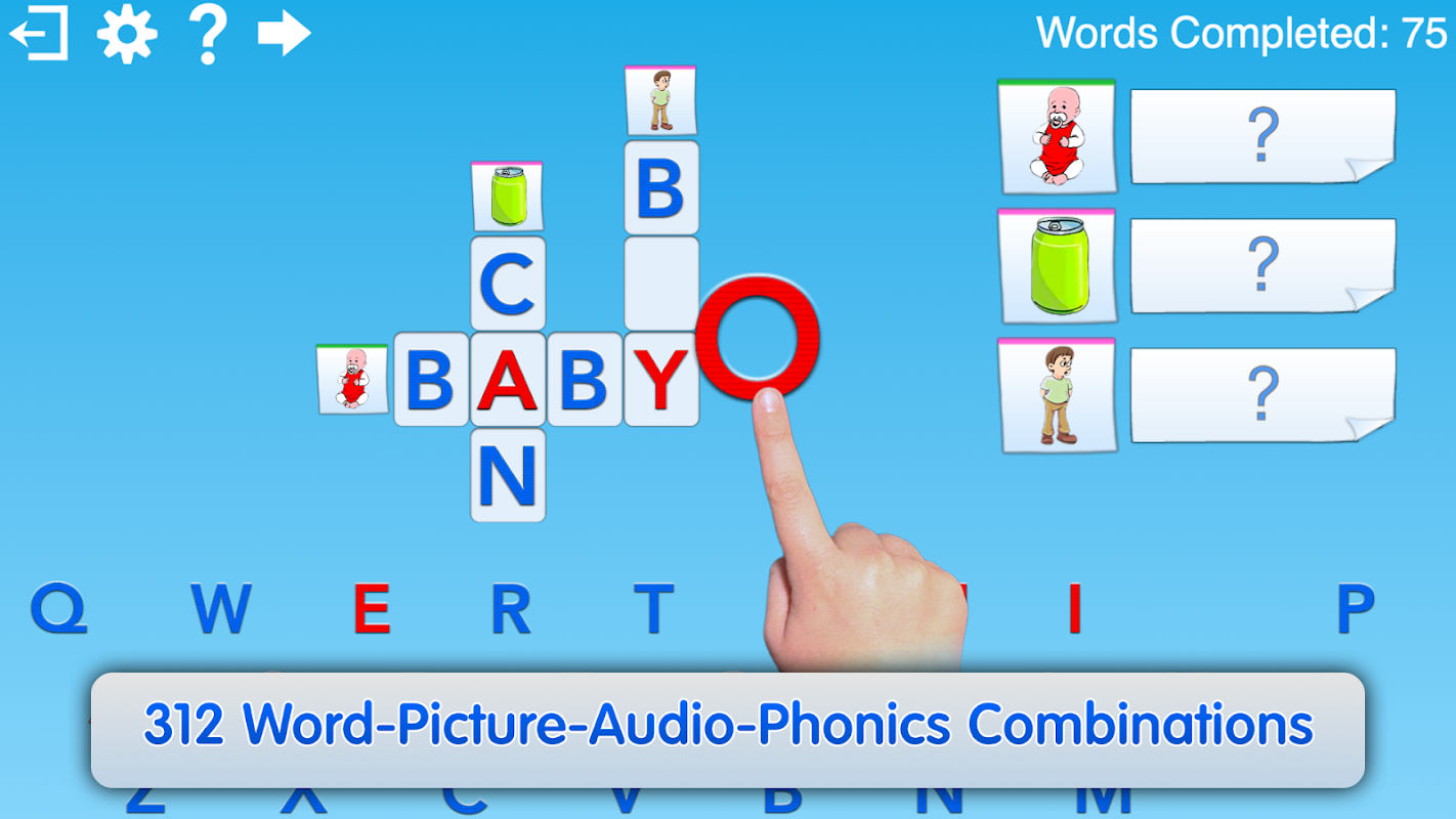 İlk olarak, uygulama çocuklara kelimelerin seslerden/fonetiklerden (fonemik farkındalık) oluştuğunu, harflerin kelimeyi tamamlamak ve harf(ler)in karşılık gelen sesini duymak için sürüklenmesi gereken boş dikdörtgenlere dokunmasına izin vererek öğretir.