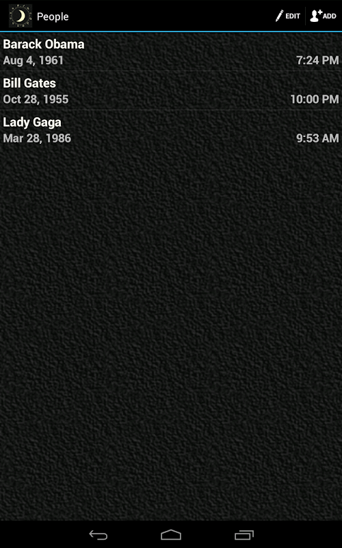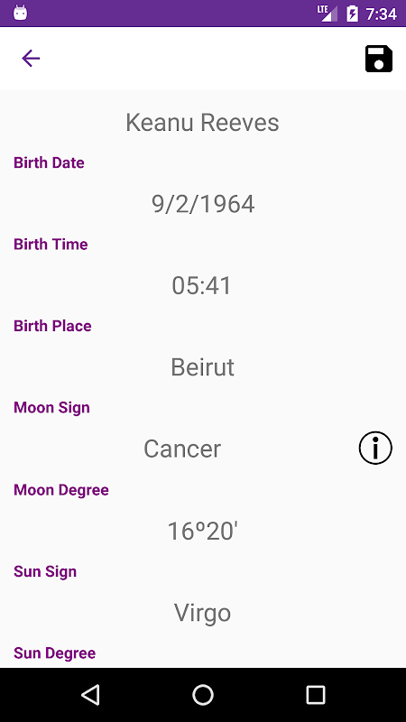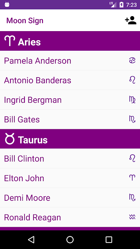 Fortunately, this app is more than happy to do for you all the complex calculations in a split of a second, just tell it the date and time of birth, as well as the location where the person was born. If the time of birth is unknown, the app will either tell you that the Moon Sign is certain anyway, as the Moon remained in the same sign on the date of birth, or it will inform you which two signs are possible candidates, and which part of the day belongs to each of them. You can then decide which of the signs is the most appropriate by reading their descriptions.