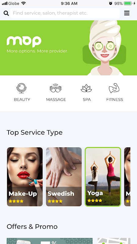 This is a booking app for services intended to look for nearby establishments such as massage, beauty and spa that offers different services like nail care, massage, make up facial, etc. Members of the app could avail automatic discounts depending on their membership. Each of the members can refer specific number of down lines/members depending on their membership level which will give them income/ discounts that can be viewed in the app as well. Also vendors who offers services can post, view, and edit offerings.