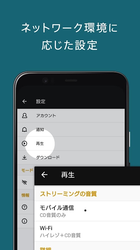データ通信量に配慮した再生やダウンロード方法をお好みで設定いただけます。