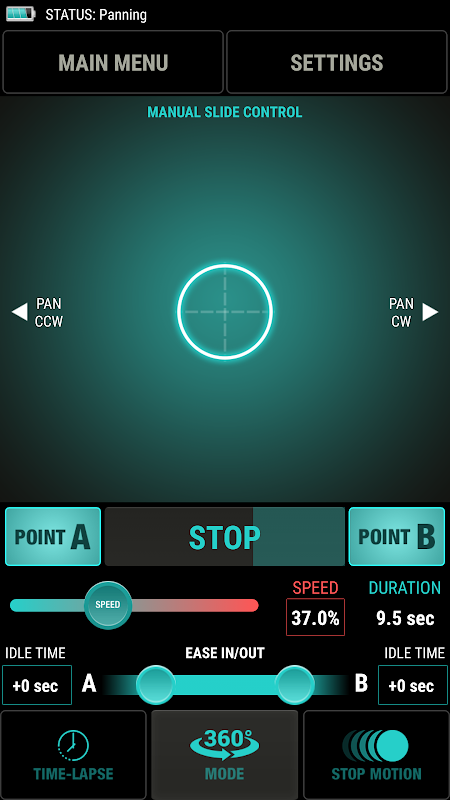 Hareket BOX App içinde bir Motion BOX ürün kombinasyonlarının her türlü kontrol etmenizi sağlar. Sen Hareket BOX App ile aynı anda 2 Hareket kutuları denetlemek ve gerçek zamanlı pan & tilt kontrolleri elde edebilirsiniz. Veya, kolayca ve program paralaks görüntüleri de eklenmiş Hareket BOX SliderONE PRO kontrol edebilirsiniz.