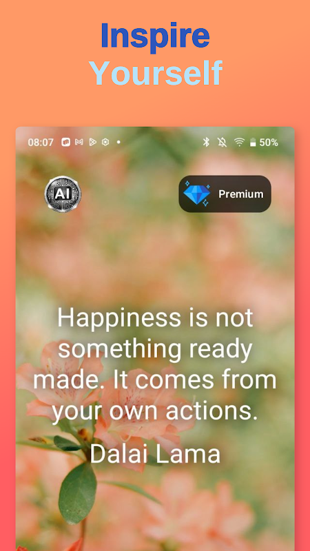 Sihir, yapay zeka görselleştirme teknolojimizde yatıyor. Her motivasyonel söz, benzersiz bir sanat eseriyle görselleştirilerek günlük motivasyon sözleriyle etkileşiminizi unutulmaz kılıyor. Ve evet, tamamen ücretsiz bir motivasyon uygulaması. Reklam yok. Banner yok, açılır pencere yok; sadece saf motivasyon.