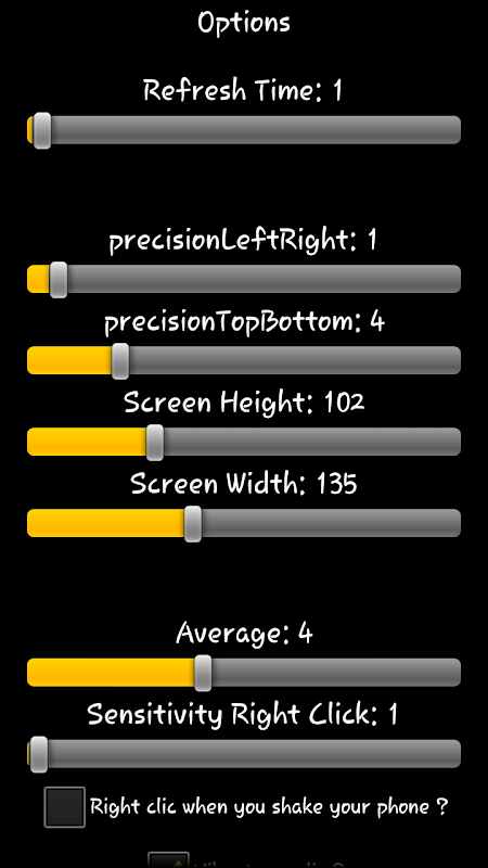 - Réglez la sensibilité suivant les capacités de votre gyroscope et la taille de votre écran.