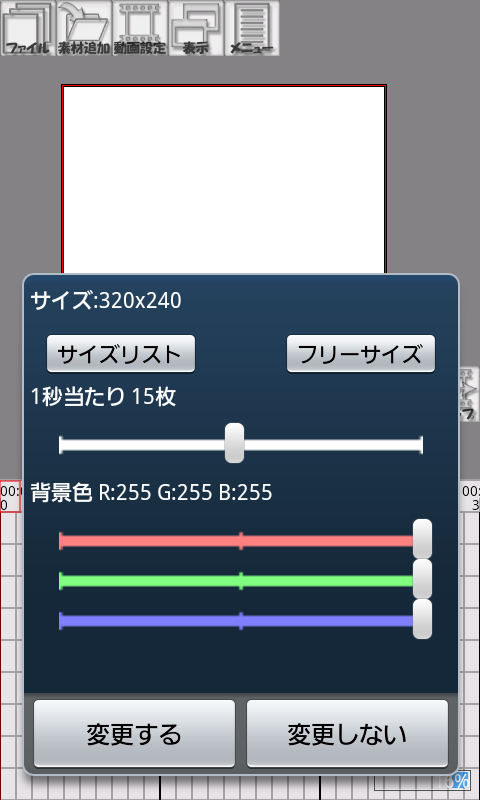とりあえず320x240・15fps・30秒程度の動画を作って、全データ量などご確認ください。(それなりの空きが必要です。)