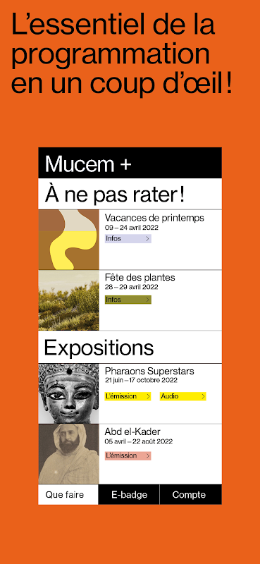 Mucem+ uygulaması cep telefonunuzda ve tabletinizde ücretsiz olarak kullanılabilir. Abone olmak