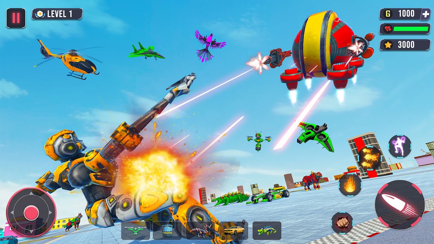 Fütüristik araba robot savaşı ile Hayvan robotu, uçan kaplan robot oyunları ve robot dinozor oyunları, fil robotu, timsah robotu, köpek robotu ve at robotu ile köpekbalığı robot oyunu araba çekimi oynamaktan heyecanlı mısınız? Harika grafikler ve Ortam ile robot savaş oyunlarında ve dönüşüm oyunlarında hava jetli robot araba atış becerilerinin keyfini çıkarın. Yeni robot oyunları 2023'ün şehir savaşına katılın ve robot motosiklet oyunlarının özel versiyonunu oynamaya ve wali oyununu dönüştürmeye şaşıracaksınız.