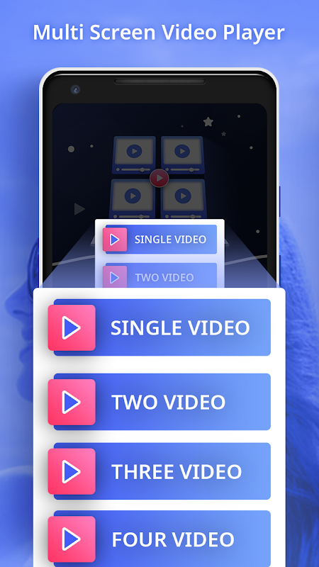 and change videos along with watching videos while you need. The multi-screen player has simple and clear User Interface to use application and it's easy and free to use. Play One Or More videos through this application whenever and wherever you want.