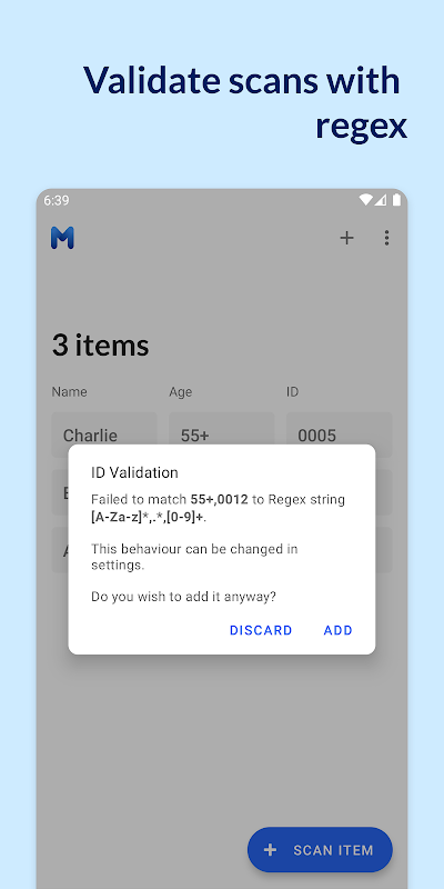 İsteğe bağlı olarak bir normal ifade doğrulama dizesi kullanarak her zaman doğru verileri aldığınızdan emin olun. Doğrulama başarısız olursa, ekleyip eklememeyi seçebilirsiniz.