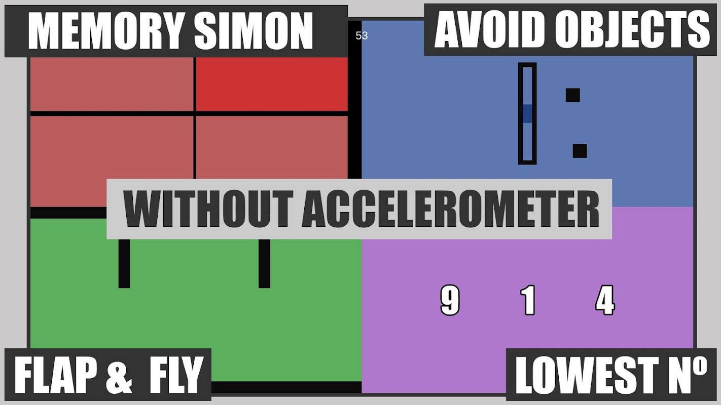 Aynı anda 4 hafıza, denge, flappy ve blok oyunu oynayın