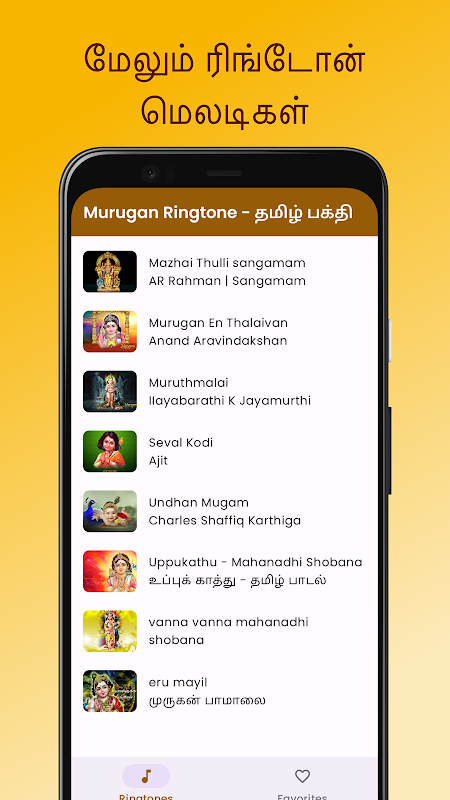 - Çeşitli Murugan Zil Sesleri: Lord Murugan'a adanmış farklı sakin ve adanmış melodiler arasından seçim yapın. 🎼