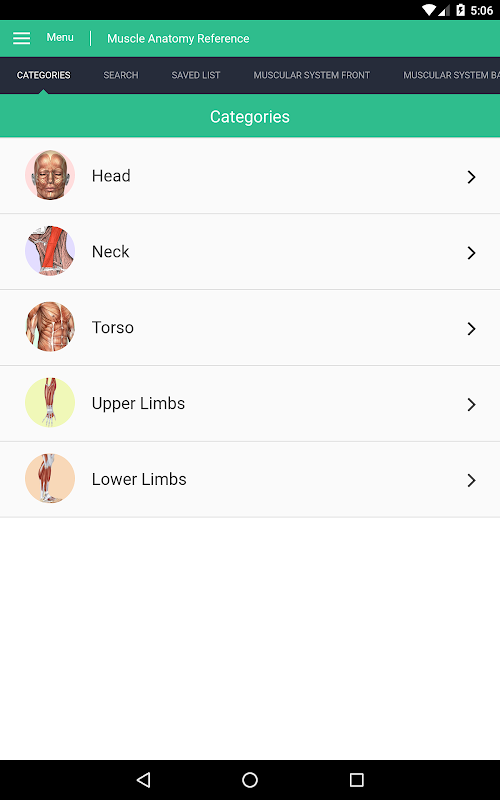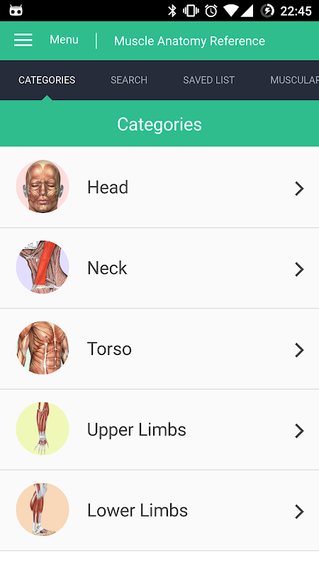 Bu uygulama aramak ve daha sezgisel bir şekilde çeşitli kas incelemek için yardımcı hızlı erişim için seçtiğiniz kas konuyu kaydetmenize olanak verir.
