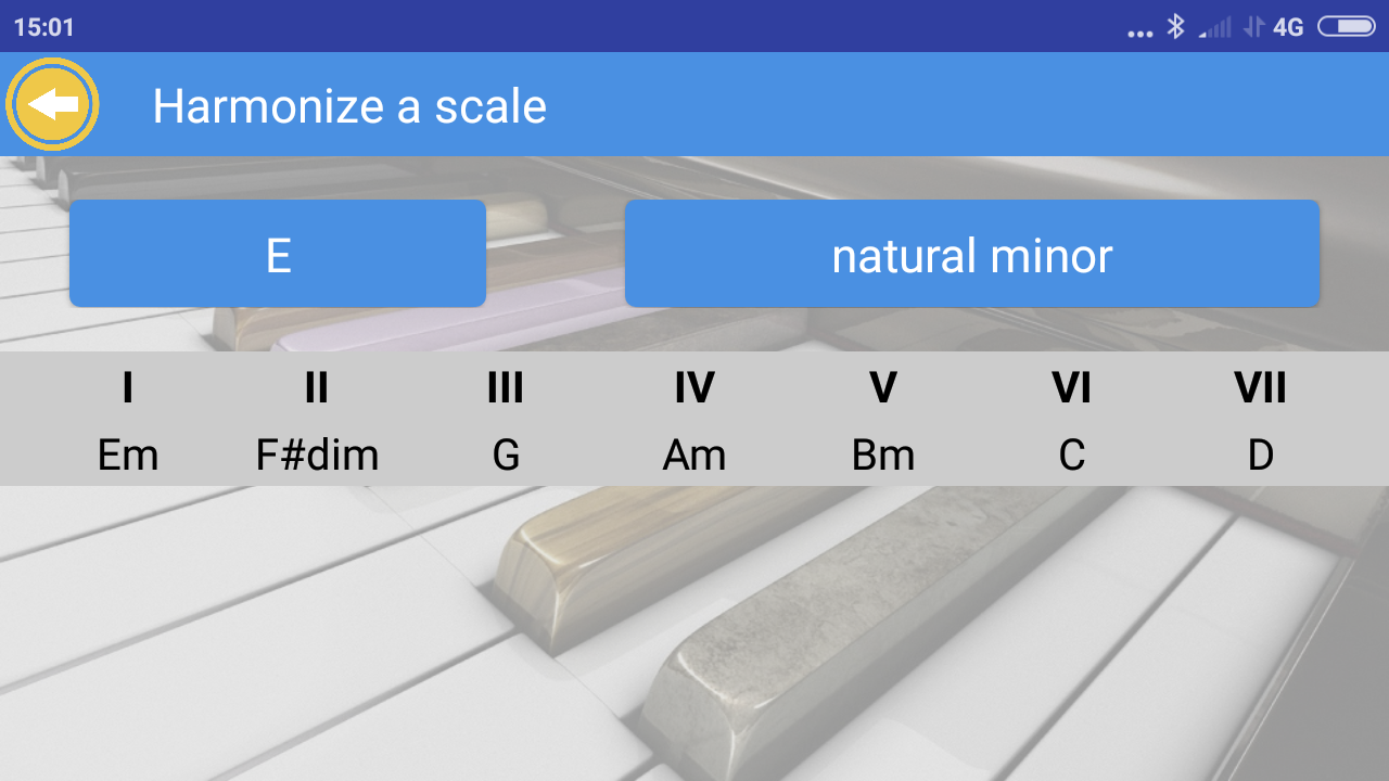 The app is very easy to use: select the root of a chord or the tonic of a scale, as well as the type of chord or scale and voila!