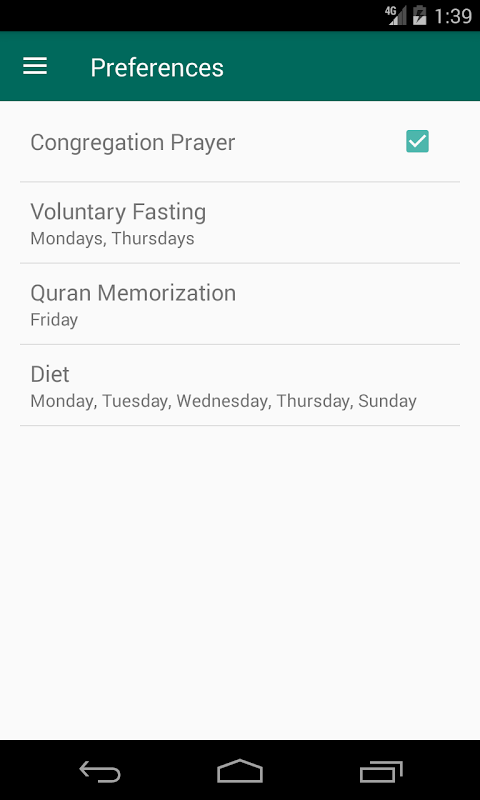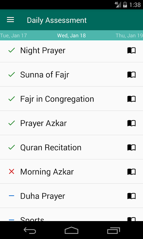 Günlük değerlendirme ve ilerleme izleyicisiyle Müslüman Günü, sizi her gün daha iyi bir Müslüman olmaya motive ediyor. Her zaman tercihlerinizi güncelleyebilir ve / veya günlük aktiviteler listesini kendi kişisel hedeflerinize uyacak şekilde düzenleyebilirsiniz.