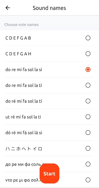 Ne tür ses adlarını öğrenmek istediğinizi seçin (IPN, Almanca, solmizasyon, vb.) – liste oldukça uzun!