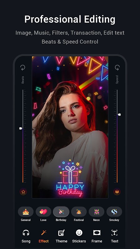 🎥 You can create animated video from Photos with music Beat. Make Particles effects with your favorite song track. 📹