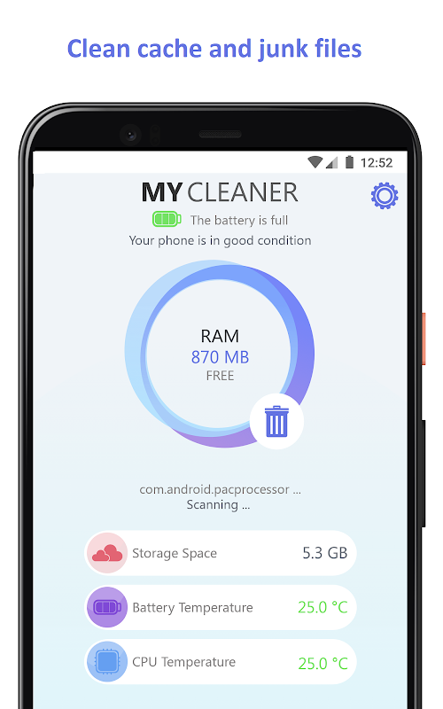 With My Cache And Memory Cleaner the phone's Speed Booster, Junk Cleaner, CPU Cooler, RAM Cleaner and Battery Saver are there to help phone's speed and optimize it.