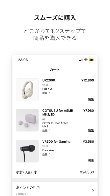 Kulaklıklar ve kulaklıklar gibi nihai ürünlerle ilgili en son bilgilerin yanı sıra etkinlik ve kampanya bilgilerini derhal sunacağız. Ürün bilgilerini kolayca kontrol edebilir, doğrudan satış sitesinde alışveriş yapabilir ve doğrudan yönetilen bir mağazanın deneme odasını rezerve edebilirsiniz.