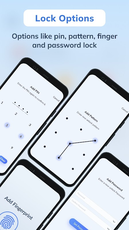 Bu uygulama, verileri dört farklı güvenlik kilidi türüyle güvence altına almanızı sağlar ve siz de değiştirebilirsiniz. Adı olan birçok uygulama simgesi edinin ve bu uygulamayı güvence altına almak için seçiminize göre değiştirin.