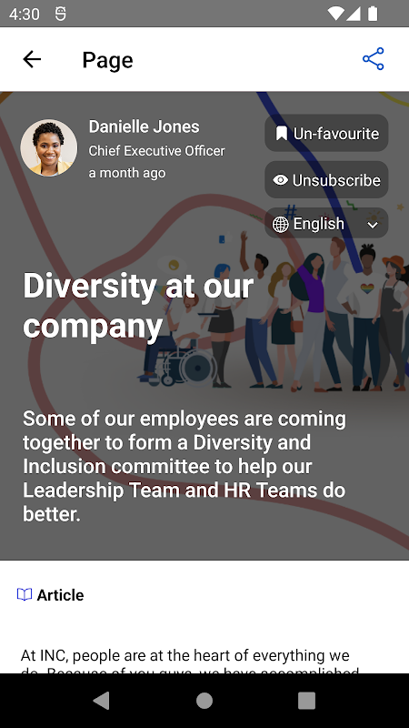 Hareket halindeyken iş arkadaşlarınızla bağlantı kurun, tüm önemli iş bilgilerine erişin ve işinizdeki en güncel haberleri takip edin. Etkileşimli Mobil Tanıtımı: Doğrudan Android cihazınıza etkileşimli intranet'inizi sunarak.