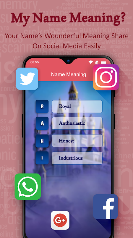 My Name Anlamı - Know Facts App, adınızın arkasında ne olduğunu kontrol etmenize ve adınızla birçok resim oluşturmanıza yardımcı olur ve en iyi temanızı seçebilir ve adınızı yazı tipi boyutunu artırabilir, değiştirebilir gibi diğer birçok grafik aracıyla koyabilirsiniz yazı tipi stili, renk ve diğer değiştirmek.