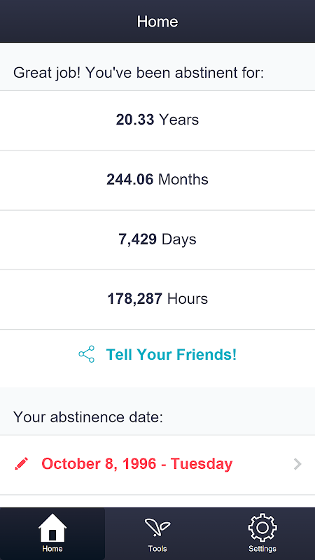 - View the amount of time you’you've been abstinent from compulsive sexual behavior each time the app is opened.