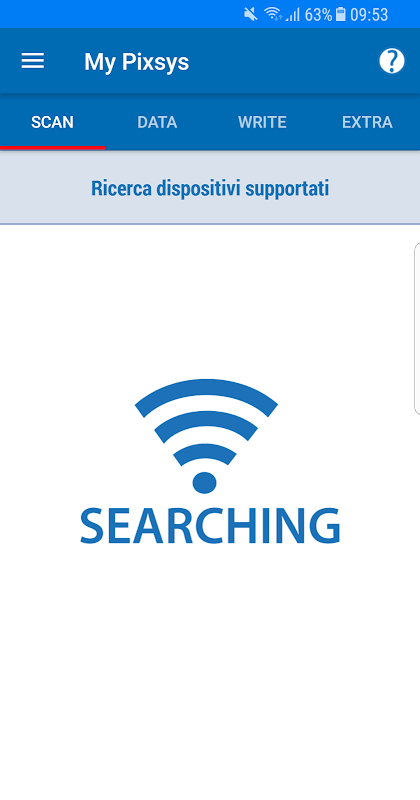 Temassız NFC bağlantısı aracılığıyla MyPixsys, cihazı (şu anda hizmet için kurulmuş olanlar arasında mevcutsa) otomatik olarak tanıyacak ve genişletilebilir gruplarla uygun bir formatta çalışmasını düzenleyen parametreleri ve değerleri gösterecektir.