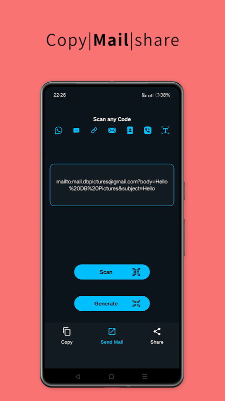 QR'm, herhangi bir kodu tarayabileceğiniz ve oluşturabileceğiniz bir lite uygulamasıyla birlikte gelir. Herhangi bir kodu istediğiniz gibi paylaşın, kopyalayın veya kaydedin.