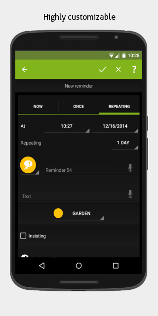 n'4get Hatırlatma Android bildirimleri gücünden yararlanın. Asla çiçek ya da diğer günlük görevleri sulama, başka bir doğum günü unutmak. Bu, yapılacaklar listesi veya görev planlayıcısı bir "kendine not" olarak görev ve son derece özelleştirilebilir.