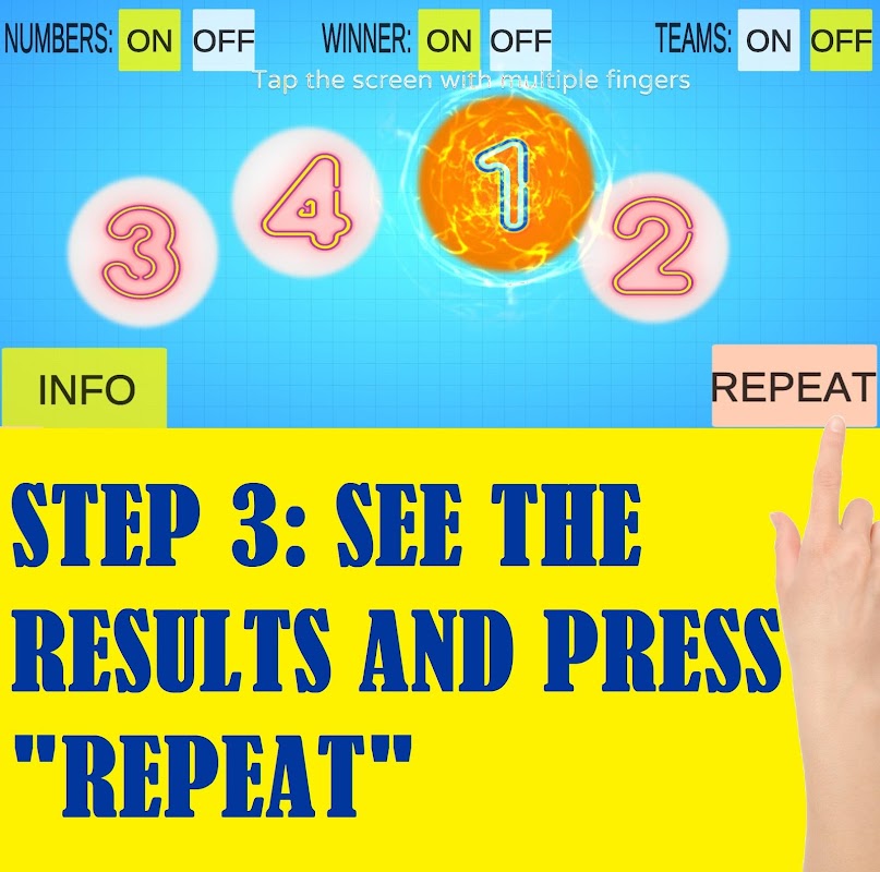 Tap Roulette 2.0 - Tap Roulette / Touch Roulette - arkadaşlarınızla veya kendi başınıza hızlı kararlar vermenizi sağlar! Sadece ekrana parmaklarınızla dokunun ve Hazır'a ve ardından Başlat'a basın! Tap Roulette, eenie meenie miney mo, zar atma, yazı tura atma veya kağıt makas taş gibi 21. yüzyıl için karar vericidir. Aynı zamanda yazı tura atar gibi de kullanabilirsiniz, sadece 2 parmağınızı ekrana koyup tap ruleti başlatmanız yeterli.