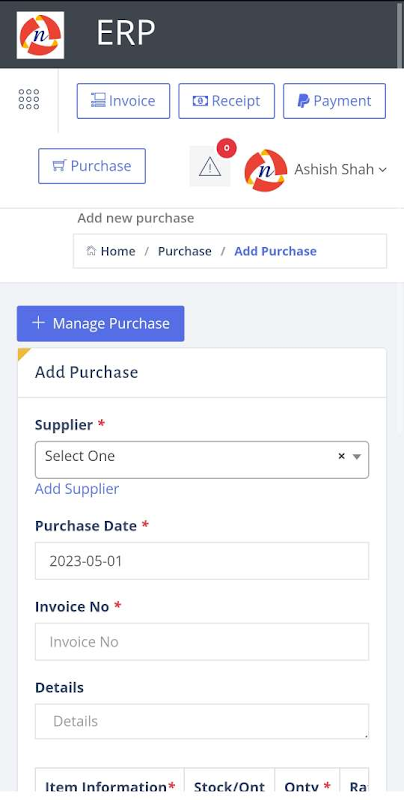 Uygulamanın Dashboard bölümünde tedarikçiler, ürünler, toplam satışlar, fatura oluşturma, ürün ekleme, satış raporu ile müşteri ekleme, satın alma raporu, stok raporu ve stok iadeleri hakkında derinlemesine bilgiler gösterilir.